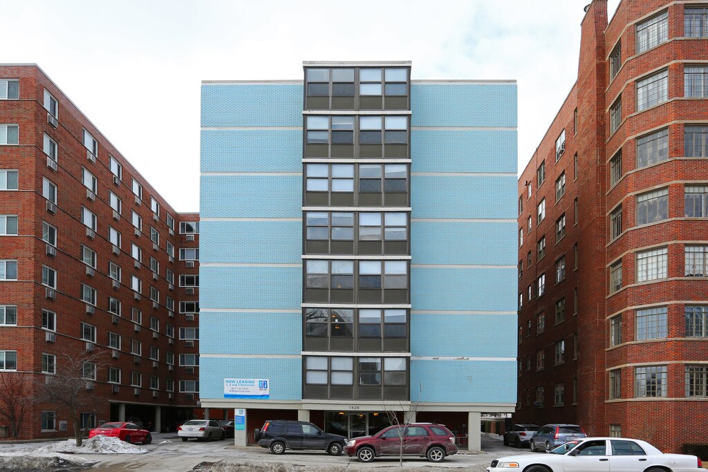 An extension of the Windy City's legendary Clark Street, Chicago Avenue is the central north/south road that connects Main and Dempster Streets, and downtown Evanston and Northwestern. Once dotted with the sameness of auto dealerships, it is now host to a wonderful array of shopping and dining. It's also where you'll discover 1420, a cool blend of newly renovated apartments behind an unmistakable blue brick facade (termed The Blue Whale by Northwestern students). Take a deep breath, because you're gonna flipper for this vintage 1950s residence offering newly renovated rental homes with generous floor plans and oversized windows. Great spaces that blowholes the lid off apartment living with hardwood floors, ample closets and kitchen with dishwasher, not to mention a brand spanking new laundry room and fitness center, on-premise parking and amenities such as Internet and DirecTV Family