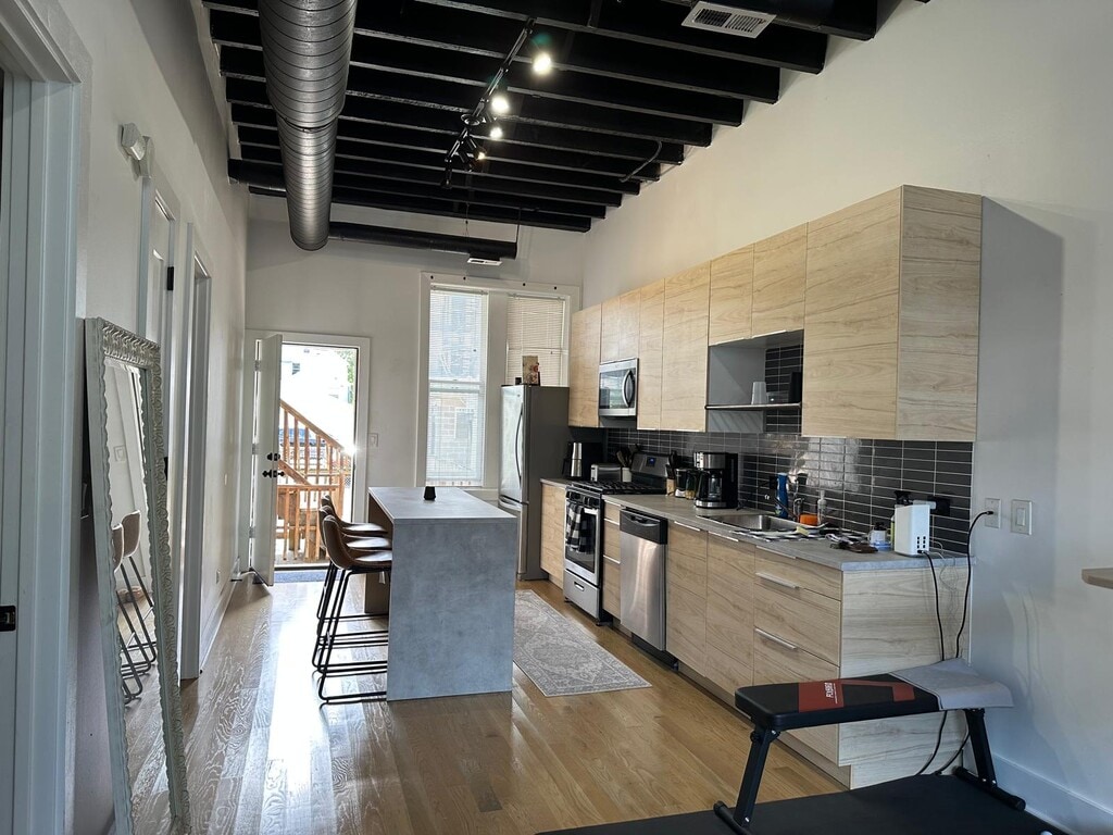 Large 1 bed/1 bath on the first floor of a 3 unit building. Completely redone large eat-in kitchen with stainless steel appliances, wood countertop with a deck adjoining the kitchen. Refinished hardwood floors throughout the apartment. Bedroom comes with large attached closets and can accommodate queen bed with dressers. Common yard for entertainment Apartment available to rent November 1st, Free shared laundry for personal use. One Parking Spot available Centrally located in Noble Square with blocks away from Blue Line station(both Division and Chicago), Steps away from Expressway
