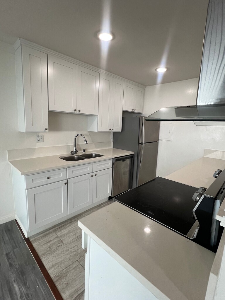 Welcome to our 2-bedroom, 2-bathroom apartment located in the heart of Westwood. This modern unit features wood-like laminate flooring throughout. The kitchen has granite countertops, REFRIGERATOR, DISHWASHER and stove. Bedrooms have lots of closet space! Unit has recessed lighting and air conditioning. Front PATIO and one bedroom with BALCONY. GATED covered PARKING is INCLUDED! On-site LAUNDRY facilities for your convenience. Owner pays water and trash. With a prime location in the bustling city of Los Angeles, residents will have easy access to shopping, dining, and entertainment options. Don't miss out on the opportunity to call this apartment home! Contact us today to schedule a tour.