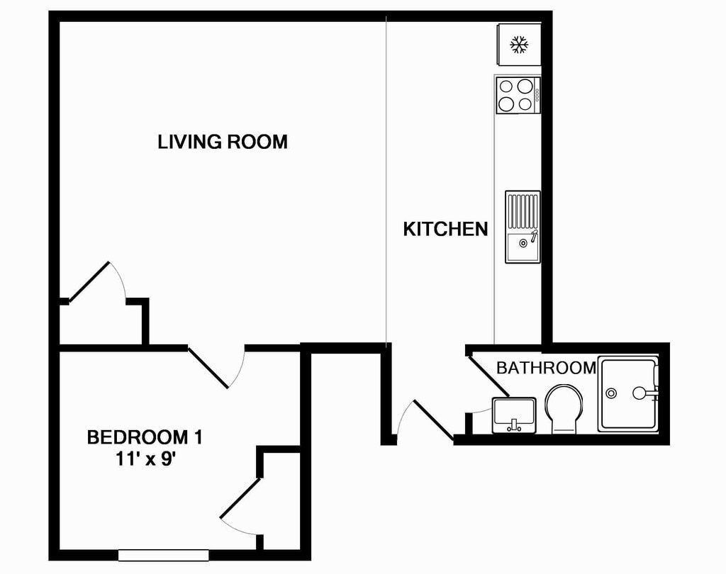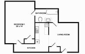 Apartment Model: 51 Bedroom, 1 Bath, 600 sq ftAvailable August 15, 2026FloorplansPhotos![]()