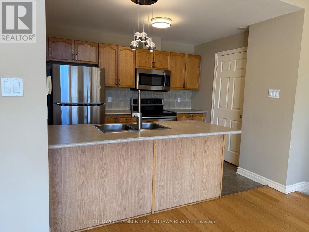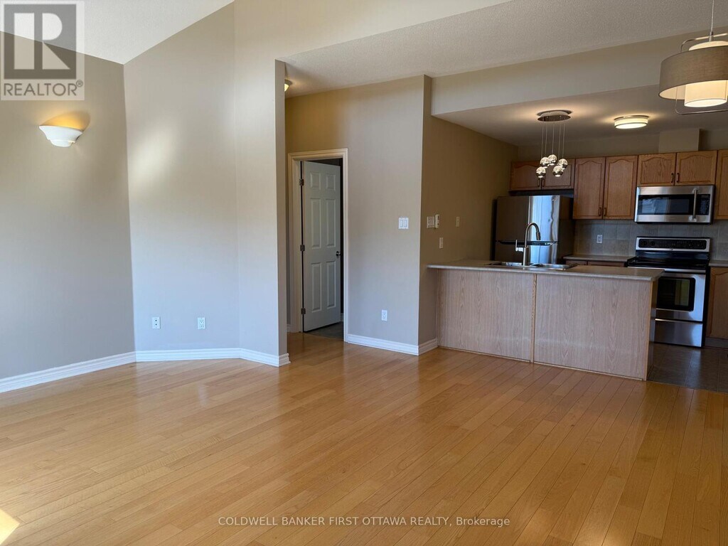 This bright and inviting top-floor condo offers a fantastic layout with stylish neutral finishes throughout. The vaulted ceilings create a spacious,open feel as soon as you walk in. The main living area features hardwood floors,newer stainless steel appliances and a large pantry that conveniently houses the in-unit laundry. The kitchen includes a generous island with plenty of workspace and room for seating,opening onto a versatile living and dining area that's perfect for entertaining or relaxing. Step out from the living space onto an exceptionally large southwest-facing balcony-ideal for enjoying the sun or hosting friends. There's room for a patio table and chairs plus a natural gas hookup for your barbecue. Both bedrooms are a great size,with the primary bedroom featuring a walk-in closet,while the full bathroom includes both a separate shower and a relaxing bathtub. Additional storage is available in the in-unit utility room. The carpeting in the stairwell has been recently updated,giving the home a fresh,clean feel,and the assigned parking spot is conveniently located directly outside the front door. Ideally located close to all of Barrhaven's amenities-shops,restaurants,parks,and public transit-this condo offers a comfortable,convenient,and low-maintenance lifestyle. (id:52069) ID#: 1897581