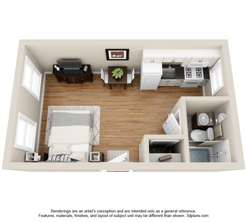 Studio, 1 Bath - Floorplan 1 1 Bedroom