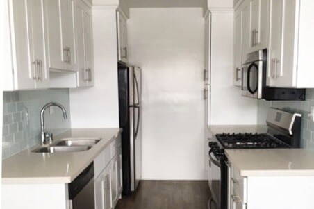 Gorgeous second floor remodel with wood laminate flooring throughout. Kitchen has wood cabinets, stainless steel appliances, granite counters, glass tile. Living room has large balcony. Bathroom has custom tile. Located in great West LA area close to Santa Monica. Pet friendly with deposit. Call or text for showing.