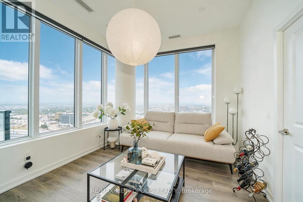 Experience upscale living in this stunning 2-bedroom + den,2-bathroom penthouse suite at Universal City 3 in the heart of Pickering. Situated on the 31st floor,this approximately 944 sq. ft. residence offers a bright,open-concept layout filled with natural light and beautiful northwest views,with a glimpse of Lake Ontario from your private balcony.Thoughtfully designed,the modern kitchen features quartz countertops,stainless steel appliances,and seamlessly flows into the spacious living and dining area-perfect for both everyday living and entertaining. The versatile den is ideal for a home office or guest space. Enjoy the rare bonus of two balconies,including one off the primary bedroom.This one-year-old,well-maintained unit offers the feel of new construction without the wait. The lease includes one parking space and a locker for added convenience.Residents enjoy premium amenities including a 24-hour concierge,fully equipped fitness centre,yoga studio,outdoor pool,BBQ terrace,party and games rooms,and guest suites. Ideally located just steps to Pickering GO Station and minutes to Hwy 401,Pickering Town Centre,shops,restaurants,and Frenchman's Bay-this is the perfect blend of comfort,convenience,and modern living.Don't miss this exceptional leasing opportunity in one of Pickering's most sought-after communities (id:52069) ID#: 1933863