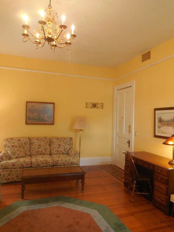 Apt 2 - 1 bedroom apartment. FULLY FURNISHED, including dishes and utensils. 2nd floor in historic mansion on Millionaires Row, with furnished private deck/balcony, hardwood floors, chandeliers, decorative fireplaces, marble bathroom. Laundry on premises. Convenient to University of Louisville, Speed Art Museum, St. James Ct, Central Park, and Downtown Business District. Smoke free, pet free. Credit check and references.