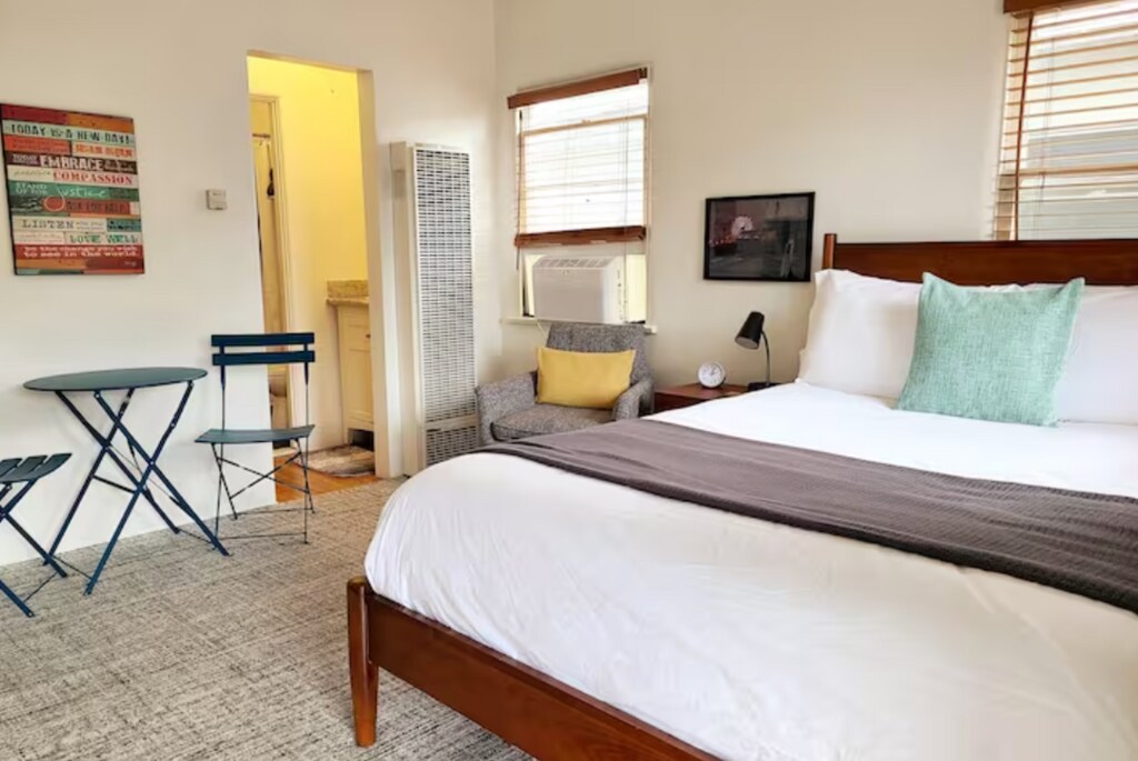 Lease length is flexible. Beautiful Studio Apartment close enough to the action of Santa Monica Pier, the beach and downtown Santa Monica Promenade, yet quiet enough to relax! Walk or bike to everything! Enjoy the warm weather and the cool ocean breezes of Santa Monica. Steps from restaurants, shopping, nightlife and the beach! Street parking with permit included. WiFi and basic TV included. Unit is furnished and includes a queen size bed, arm chair, dresser, raised table and chair, flat screen tv, microwave, coffee maker, toaster, refrigerator, oven/stove, dishes, hair dryer and sheets & towels. Outdoor Balcony with Table & Chairs. Less than 2 blocks from a Wine Bar and Coffee Shop, Pizza Place, Gourmet Burger Restaurant, Poke Shop, Sandwich Shops (Bay Cities (Famous) & Jersey Mike's) and many more!