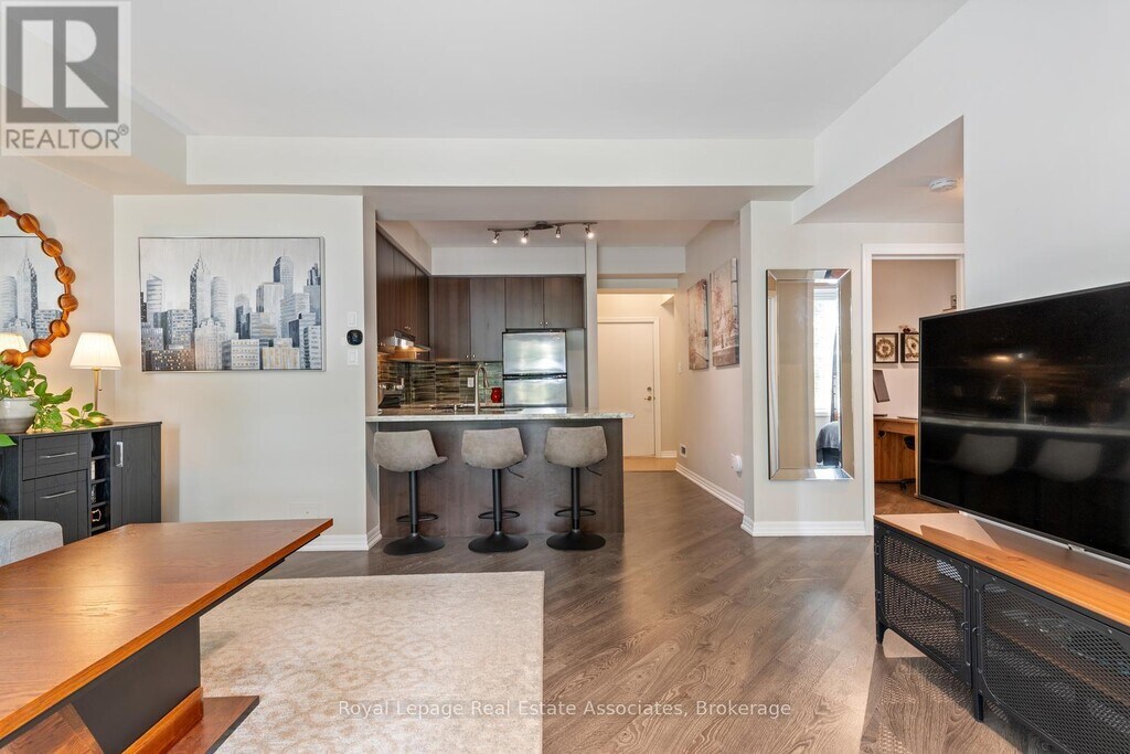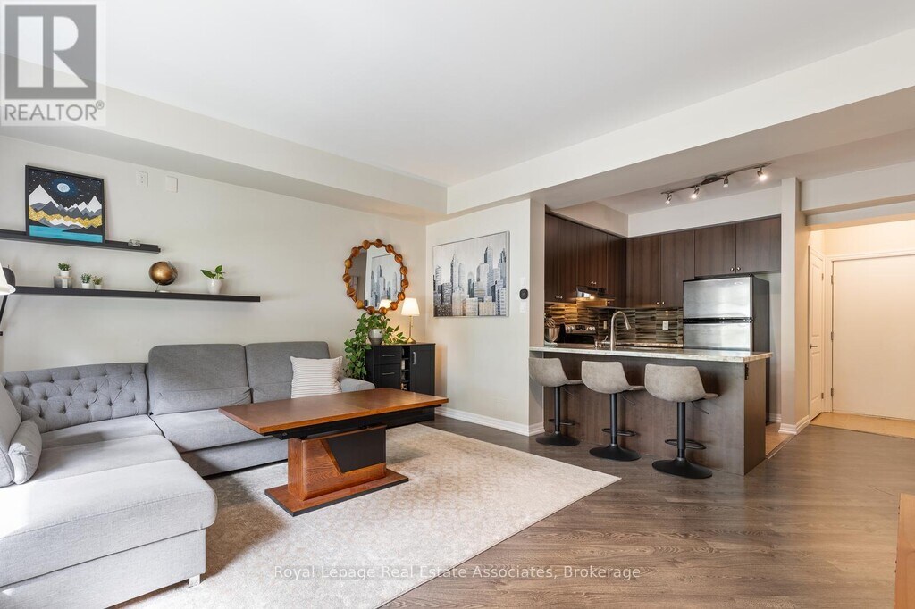 Spacious 1 bedroom plus den nestled in a lovely complex on the Mississauga/Etobicoke border! Bright open concept living area with 9' ceilings features a good sized kitchen with breakfast bar,quartz countertops & stainless steel appliances. The primary bedroom and den offer loads of closet storage space. The den is perfect for those who work from home or offers the flexibility to add a 2nd bed. Convenient main level direct garage access to parking spot. Great location for commuters as Long Branch GO Station is within walking distance. This is a fantastic lake-side neighbourhood allowing you to walk to Marie Curtis Park,Lakefront Promenade,Lakeview Golf Course,and so much more. Close to a variety of shops & restaurants in Port Credit. Easy access to major highways including QEW & 427. (id:52069) ID#: 2006187