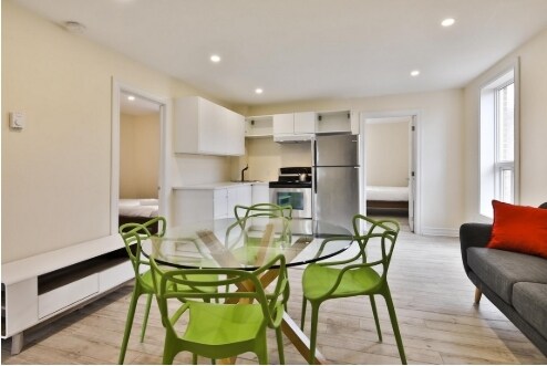 ~ Logements de 4 chambres récemment rénovés au cœur du Village ~ Bienvenue au 1439–1449, rue Dorion, idéalement situé dans le quartier animé du Village à Montréal, à quelques pas du centre-ville et du fleuve Saint-Laurent. Ces spacieux appartements de 4 chambres et 1 salle de bain ont été récemment rénovés et offrent des finitions modernes ainsi que des aires de vie lumineuses et ouvertes — parfaits pour les familles, les colocataires ou ceux qui apprécient l’espace supplémentaire. Chaque logement est entièrement équipé avec électroménagers inclus : réfrigérateur, cuisinière, lave-vaisselle, laveuse et sécheuse — tout le nécessaire pour un mode de vie pratique et confortable. Situé sur une rue résidentielle tranquille, vous êtes à distance de marche des cafés, épiceries, parcs et de la dynamique rue Sainte-Catherine. Station de métro la plus proche : Papineau Lignes d’autobus à proximité : 10, 45, 359 Vous avez une voiture? Stationnement sur rue disponible avec vignette municipale. Exclusions : chauffage, eau chaude et électricité ~ Newly renovated 4-bedroom units in the heart of the Village ~ Welcome to 1439–1449 Rue Dorion, ideally located in Montréal’s vibrant Village neighbourhood, just steps from downtown and the St. Lawrence River. These spacious 4 bedroom, 1 bathroom apartments have been newly renovated to offer modern finishes and bright, open layouts — perfect for families, roommates, or those who simply love extra space. Each unit includes a full set of appliances: fridge, stove, dishwasher, washer, and dryer — providing everything you need for convenient and comfortable living. Located on a quiet residential street, you’re walking distance to cafés, groceries, parks, and the lively Sainte-Catherine strip. Nearest Metro station: Papineau Nearby bus lines: 10, 45, 359 Have a car? Street parking is available with a city permit. Exclusions: heat, hot water, and electricity