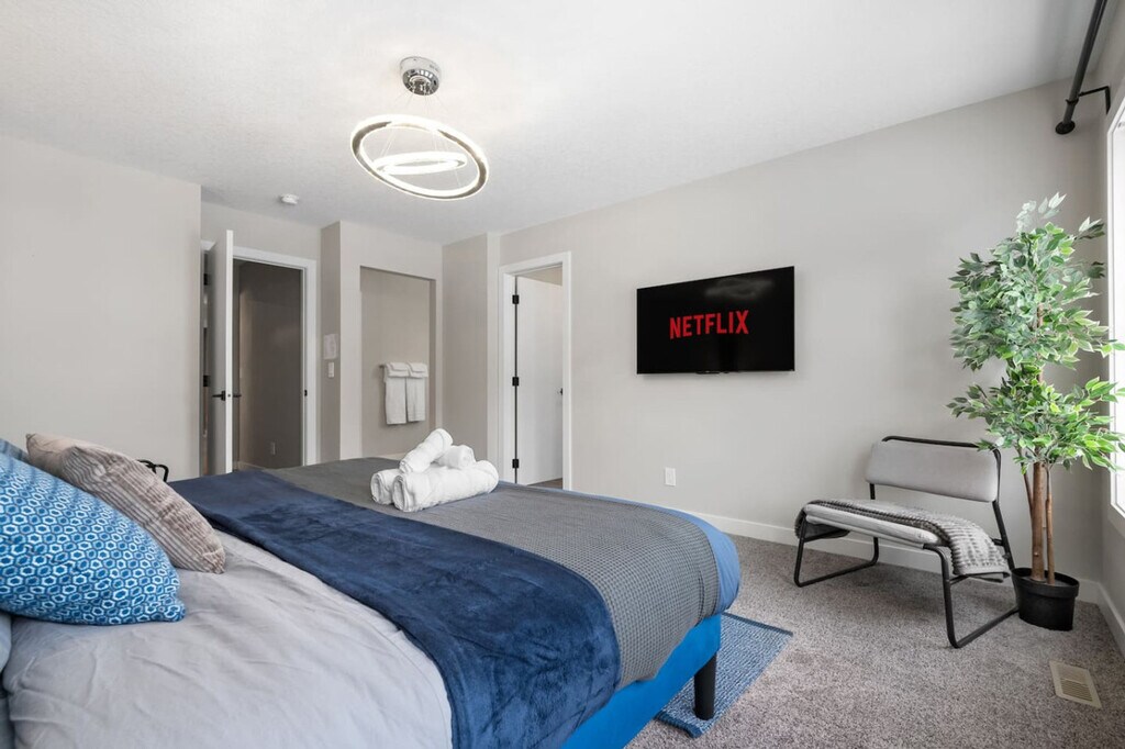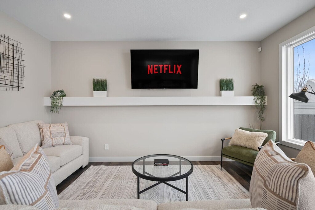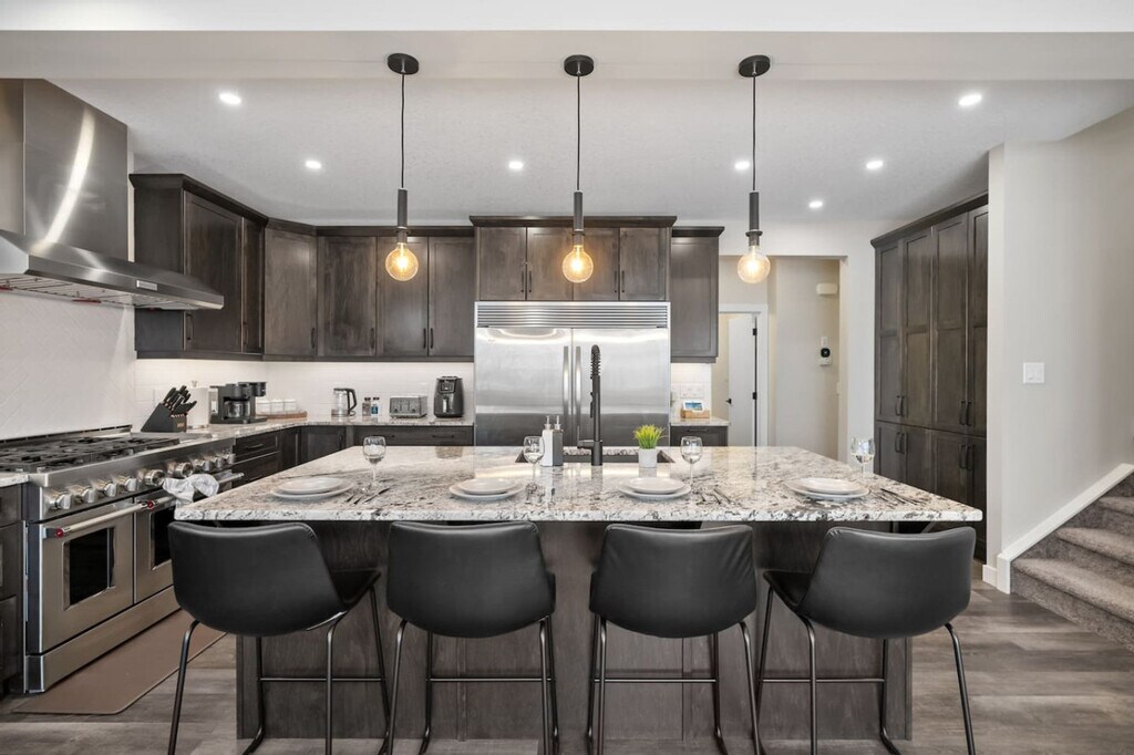 Feel at home in this spacious luxury home in Calgary, built for fun, relaxation, and unforgettable memories. Host game nights, enjoy movie marathons, or belt out tunes in the karaoke room—there’s something for everyone in this inviting space. The apartment boasts multiple living rooms equipped with a pool table, air hockey table, karaoke room, and a library with over 100 books. The modern kitchen is fully equipped with stainless steel and custom appliances, including a commercial-grade refrigerator and Keurig coffee maker. Enjoy meals in the large dining area with island seating and bar stools. Optional upgrades include a National Park Entry, Welcome Basket, Birthday Decor Package, Romantic Wine and Flower Package, Spa at Home Package, Movie Night Upgrade, Christmas Tree and Decor, Halloween Decor and Pumpkin Carving Package, Winter Cozy Package, Beer Tasting Kit, Diffuser and Aroma Set, Additional Bedding and Sleeping Arrangements, Grocery Pre-Stocking Service, and Pet Friendly Package. Two-car garage parking is provided, and free street parking is available in the area. Conveniently located, this home offers easy access to key locations such as the Blue Devil Golf Club, Fish Creek Park, and Shawnessy Shopping Centre. With quick access to major highways, trips to Banff, Kananaskis, and Canmore are a breeze. Nearby, you'll find great restaurants and cafés like Starbucks and The Canadian Brewhouse. Check-in and check-out are fully self-service, with detailed instructions provided for a seamless experience. A $250 CAD fine will be charged if smoking occurs, following the no-smoking policy. Quiet hours are from 10 pm to 7 am, and a strict complaint policy is in place, with eviction after the second complaint. No parties, drugs, excessive drinking, or loud music are allowed. Unauthorized late check-out will result in additional fees. The home includes an office and den area, providing a comfortable space for remote work with high-speed internet access.