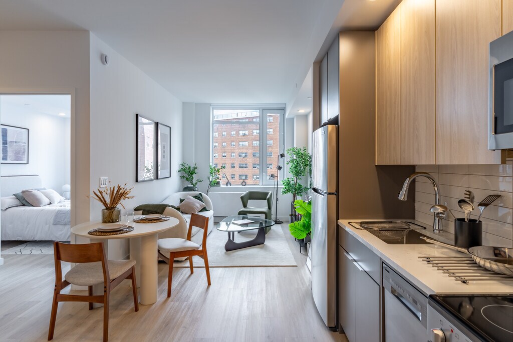 A Vertical Neighborhood Built for What’s Next Welcome to 1440 Amsterdam, an all-new 28-story residential community in Upper Manhattan, delivering 490 thoughtfully designed residences ranging from smart studios to expansive two bedrooms — many with panoramic city and river views. Developed and managed by one of NYC’s most respected operators, the building is fully staffed with a full-time doorman, and two live-in resident managers to ensure round-the-clock service and peace of mind. What truly sets 1440 Amsterdam apart are the next-level amenities that turn everyday routines into elevated experiences. The building features three floors of lifestyle offerings — including co-working lounges, basketball court, podcast studios, music room, a golf simulator, game rooms, and fitness and wellness zones — plus a rooftop oasis unlike anything else in the area. Atop the building, the Sky Lounge and outdoor cinema create a spectacular backdrop for sunset gatherings. Surrounding it are private cabanas, outdoor kitchens, and grilling stations, designed for everything from weekend BBQs to impromptu celebrations with neighbors. From the convenience of washers and dryers in every unit to communal rooftop movie nights, this is more than just a place to live — it’s a place to thrive. Located near Columbia University, City College, Morningside Park, multiple subway lines, and curated restaurants and shopping.