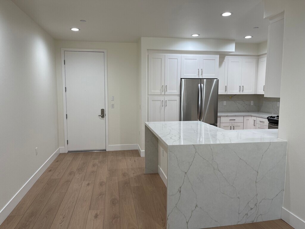 Private corner unit on the second floor. Recently renovated gourmet kitchen with waterfall island & stainless steel appliances, dining area, powder bath, living room and hardwood flooring. Modern architectural condo building constructed in 2009. - 3 bedroom + 2.5 bath - Large primary suite with private balcony and dual master sinks, soak-in tub and separate shower, walk-in closet. - Two secondary bedrooms with jack & jill bathroom (dual-sink vanity). - Washer & Dryer in unit. - Gas fireplace and balcony off living room. - Nest thermostat. - Two (2) tandem parking spaces in secure, subterranean garage. - Onsite fitness center and multi-purpose recreation room. - Professionally managed. - Walkable to sought-after Tsons Preschool and numerous daily needs amenities (Ralphs, Starbucks, Jamba Juice, CVS, Chase Bank, Bank of America, Chipotle, Silver Lake Ramen - coming soon!)