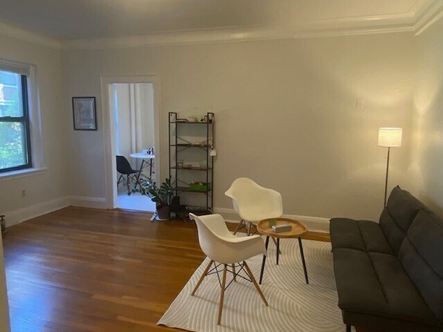 Spacious one bedroom on a high first floor of a professionally managed condo building in the Heart of Cleveland Circle, available NOW-10/1! This beautiful unit features hardwood floors, high ceilings, tons of windows, good light and plenty of charm and character. Additional features include a nicely updated Eat-In-Kitchen with a dishwasher, a large living room with space for a dining area or office, and a good size bedroom with two large closets. There's on-site laundry, a common roof deck, and the B,C and D trains are just steps away. This A+ location is a short distance to both the Longwood Medical Area and Downtown Boston.