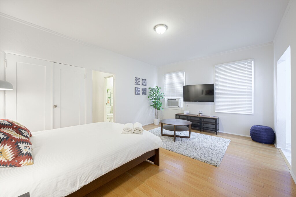 Beautiful studio in Prime area of Beverly Hills. Kitchen has all appliances. Hardwood floor. A/C unit.