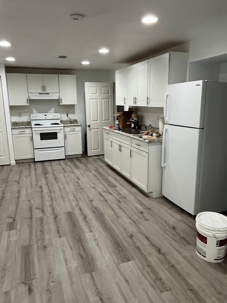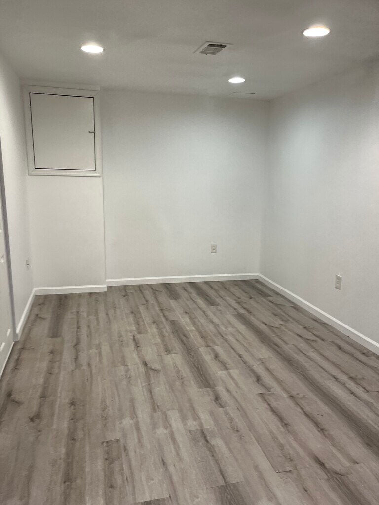 Basement Room/Studio space for rent. Includes a designated parking space, private entrance, private kitchen, private bathroom, private washer/dryer and an additional room/storage space. Joint use of the fully fenced backyard. $1,250/mo for a single resident, utilities included (Water, electric, internet and security system). I'm sorry but no cats or dogs - we have both and can't risk them not getting along. 1 year lease prefered but can negotiate if necessary. No smoking of any kind on the property.