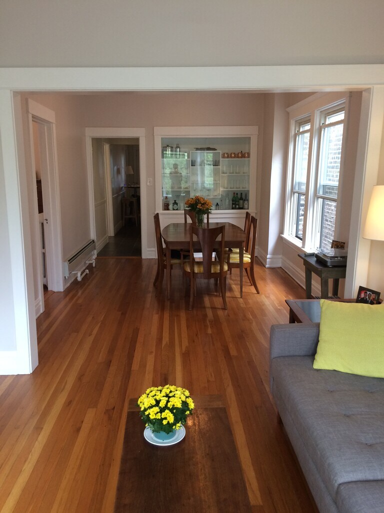Spacious and recently renovated top-floor 2 bedroom plus den, 1 bathroom unit in a classic Chicago greystone located in the heart of Andersonville. This unit features stainless steel appliances microwave and dishwasher, formal living and dining room with a custom built-in and an enclosed back porch. Full sized washer and dryer free for tenants use in the basement. Relax in the beautiful shared back yard perfect for entertaining. Heat and gas and 1 garage space are included in the rent. Clark Street bus, countless restaurants, bars, and boutiques right outside your door. Easily access the Berwyn Red Line stop just a few blocks away. Pets considered with fee/pet rent