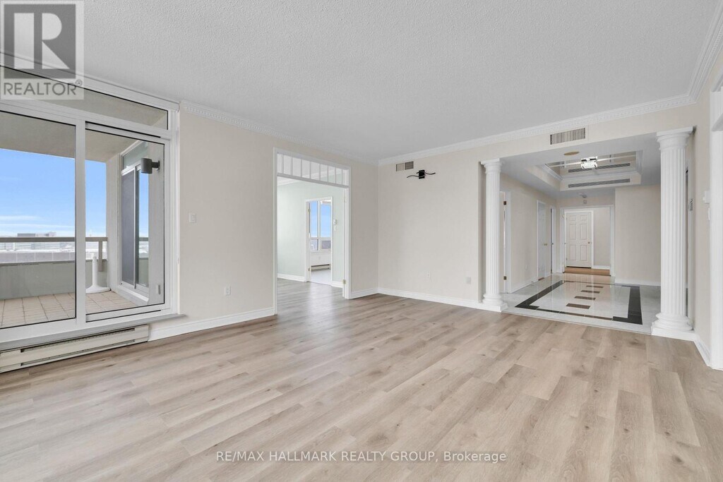 Welcome to "The Classics at Riviera" - this elegant 1990 sq ft condominium offers 2 bedrooms plus a den,3 bathrooms and an unparalleled lifestyle with an array of top-tier amenities. Boasting a bright and spacious floor plan with marble foyer,high ceilings,new gleaming hardwood floors and an abundance of windows. The generous living room,den,and formal dining room provide ideal spaces for both everyday comfort and entertaining. The well-appointed kitchen features granite countertops and opens to an inviting eating area. Impressive primary suite,complete with two walk-in closets and a luxurious 6-piece ensuite with Roman tub and separate shower. The unit also features a spacious secondary bedroom,additional full bathroom,and convenient powder room. Additional highlights include a balcony,in-suite laundry,underground parking,and a storage locker. Residents enjoy an abundance of exceptional amenities,including a fully equipped fitness centre,weight room,indoor pickleball court,indoor pool,sauna,and steam room. Entertain in the elegant party room with piano and dining area,relax in the library,or enjoy the games room with pool table and a separate ping pong room. Outdoors,beautifully landscaped grounds feature walking paths,fountains,BBQ areas,an outdoor pool,and tennis courts. Added conveniences include a hair salon,meeting room,concierge services,and 24/7 gated security. Ideally located minutes to the 417,Trainyards shopping,and a short walk to Hurdman LRT station,this exceptional condominium offers the perfect blend of luxury &convenience! Tenant pays heat,hydro and tenant insurance. (id:63800) ID#: 1402969