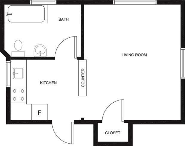 Studio, 1 Bath, 276 sq ftAvailable NowModel Gallery