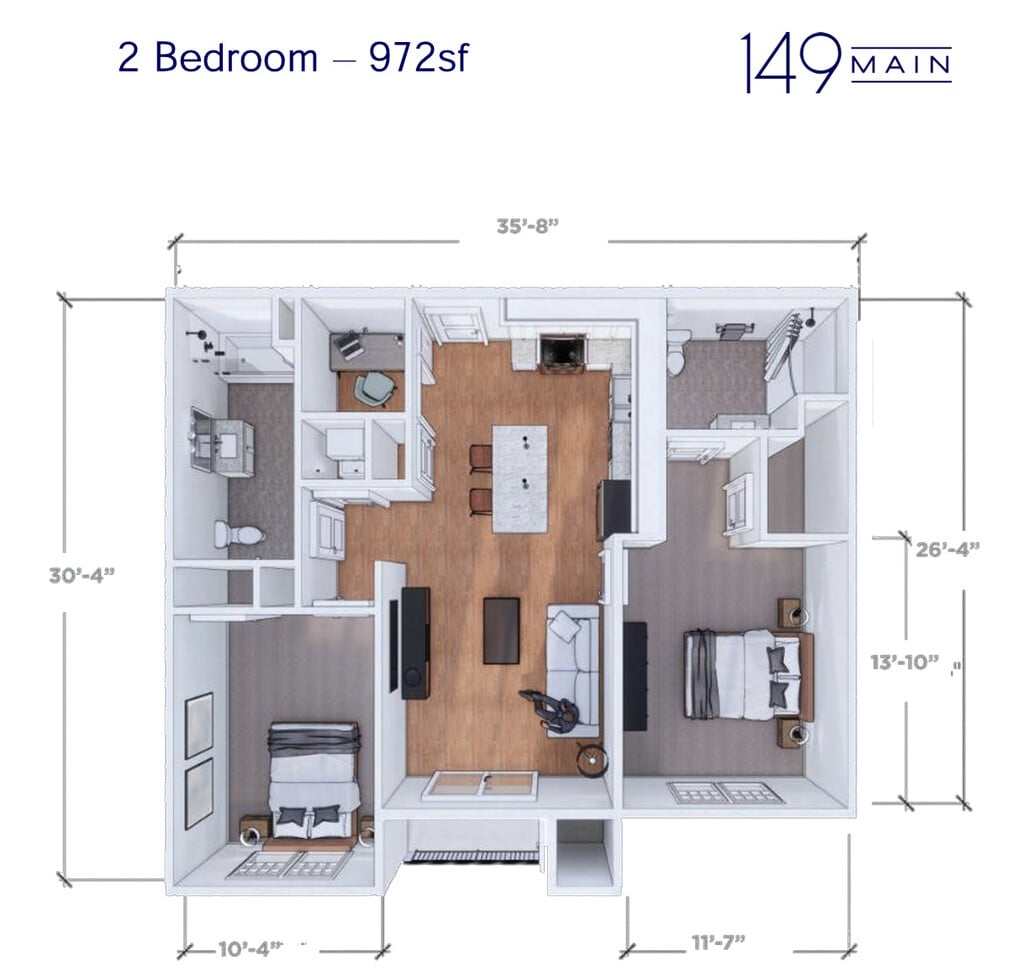 149 Main Street Apartments offers 1 to 2 Bedroom apartments starting from $1,850 and having 712–1,140 sq ft. Here is the current pricing and availability: