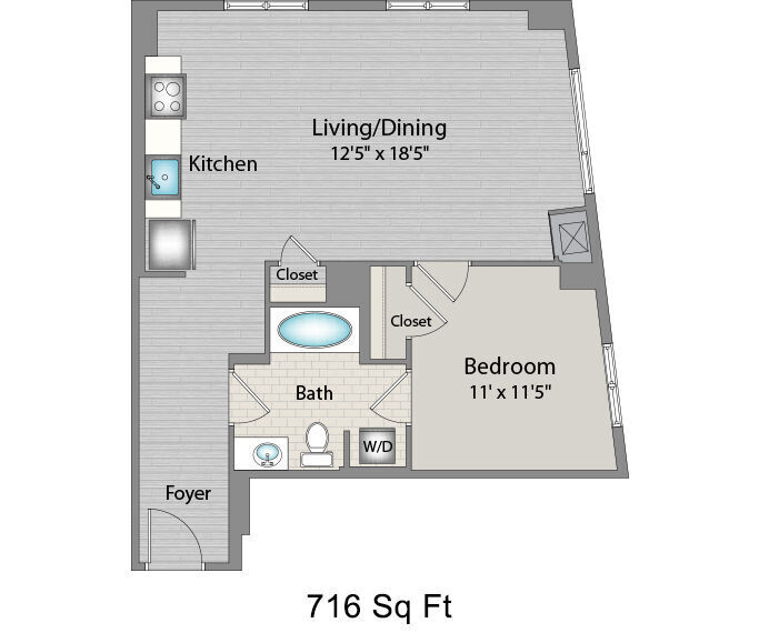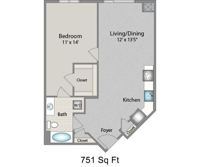 Studio, 1 Bath, 600 sq ftModel Gallery