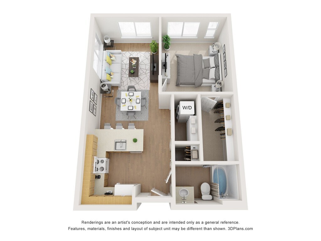 1 Bed 1 Bath 510 sqft - Floorplan 1 Urban One Bedroom