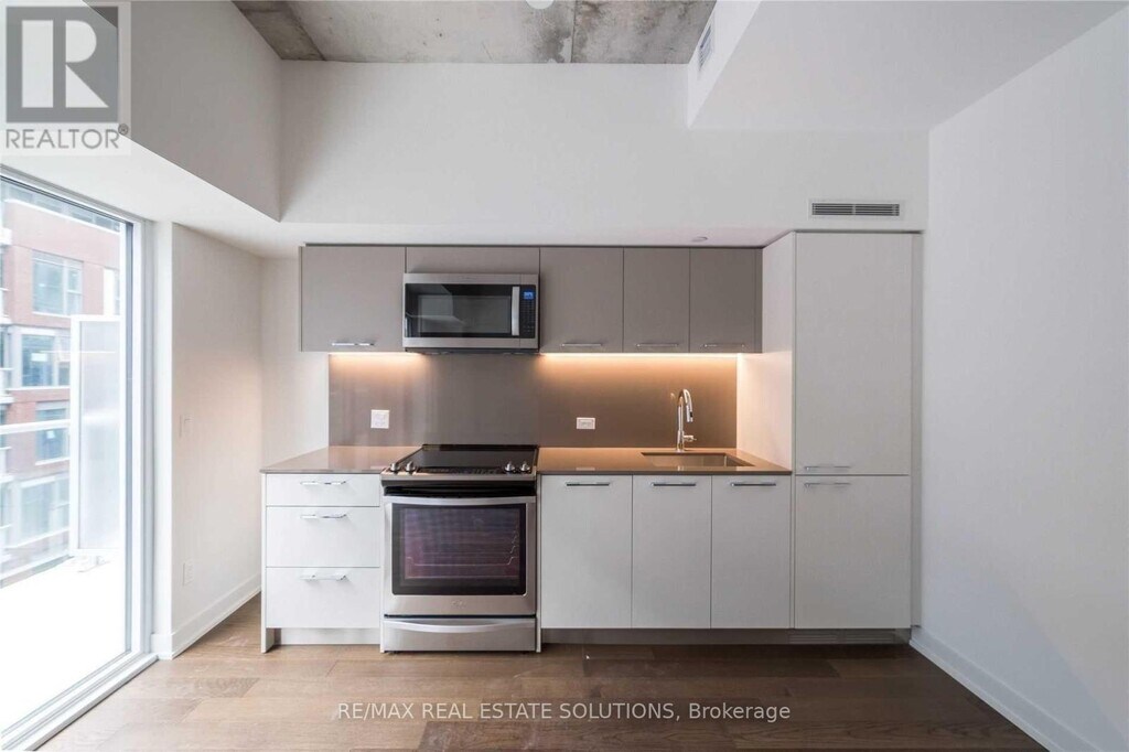 Available February 1,2026 - this bright and efficient 1-bed,1-bath suite at Riverside Square offers modern living with smart use of space and thoughtful design. The functional layout features 10 ft exposed concrete ceilings,floor-to-ceiling windows,and contemporary finishes throughout. A sleek modern kitchen includes full-size appliances and ample storage,while the open-concept living area extends seamlessly to a private balcony-perfect for morning coffee or evening unwinding. Residents enjoy convenient building amenities including a concierge,fitness centre,rooftop terrace,and well-designed shared spaces for work or relaxation. Perfectly positioned at the crossroads of Leslieville,Riverdale,and Corktown,the location offers exceptional convenience: 24-hour streetcar service at your door,quick access to the DVP,and a short commute to the downtown core. Walk to neighbourhood cafés,restaurants,parks,and local shops-everything feels close. A stylish,well-located home in one of Toronto's most vibrant east-end communities. (id:52069) ID#: 1882415