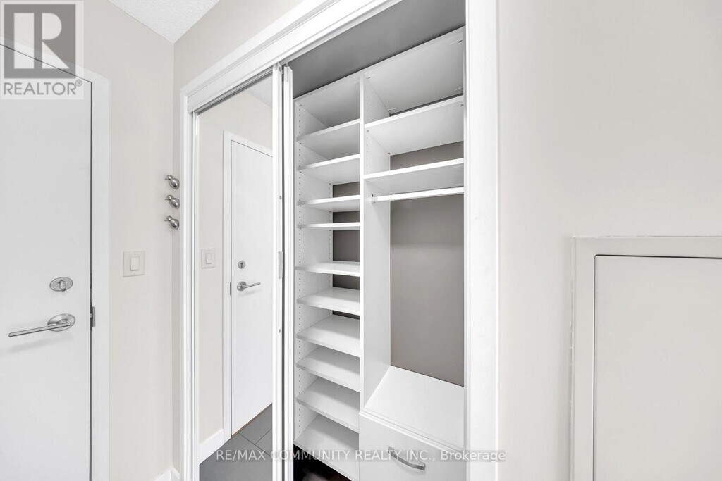 This bright and move-in ready 1-bedroom + den suite offers a thoughtfully appointed living space in one of Toronto's most sought-after downtown communities. The versatile den is large enough to function as a home office or nursery,perfect for modern urban living. Freshly painted throughout and featuring sleek laminate flooring with no carpets anywhere,this unit feels clean,modern,and inviting from the moment you walk in. This unit has been thoughtfully upgraded with custom closets in the coat closet and primary bedroom,plus built-in shelving in the laundry room,keeping everything neatly tucked away without sacrificing living space. Nestled in a boutique-style building,the building offers a fantastic range of amenities including a pool,hot tub,gym,party room,guest suites,and 24- hour concierge service. One locker is included for additional storage convenience. Step outside and find yourself moments from Toronto's most iconic destinations,including the waterfront,vibrant King West,the CN Tower,Rogers Centre,the Financial District,top dining,entertainment,and green spaces. Everything the city has to offer is right at your doorstep. (id:63800) ID#: 2140641