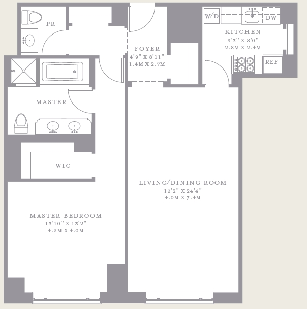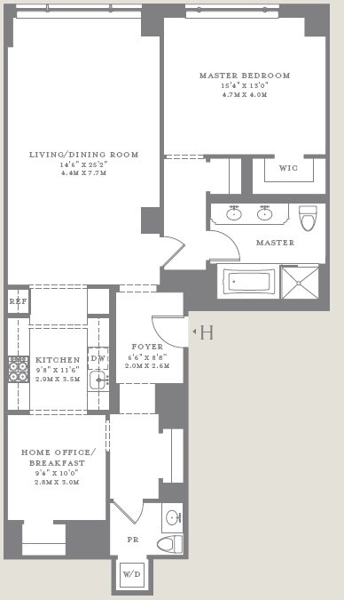 1 Bed, 1.5 baths