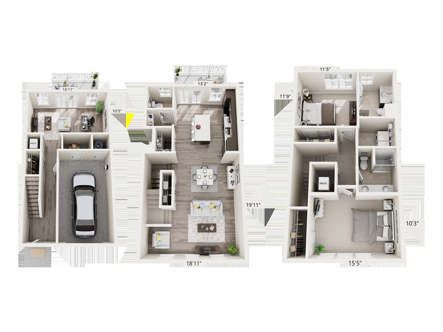 Apartment Unit: A5.DApartment Model: 1 Bed 1.5 Bath w/ Den (Townhouse Style)$3,5001 Bedroom, 1.5 Bath, 1141 sq ftAvailable Now2 Bedrooms