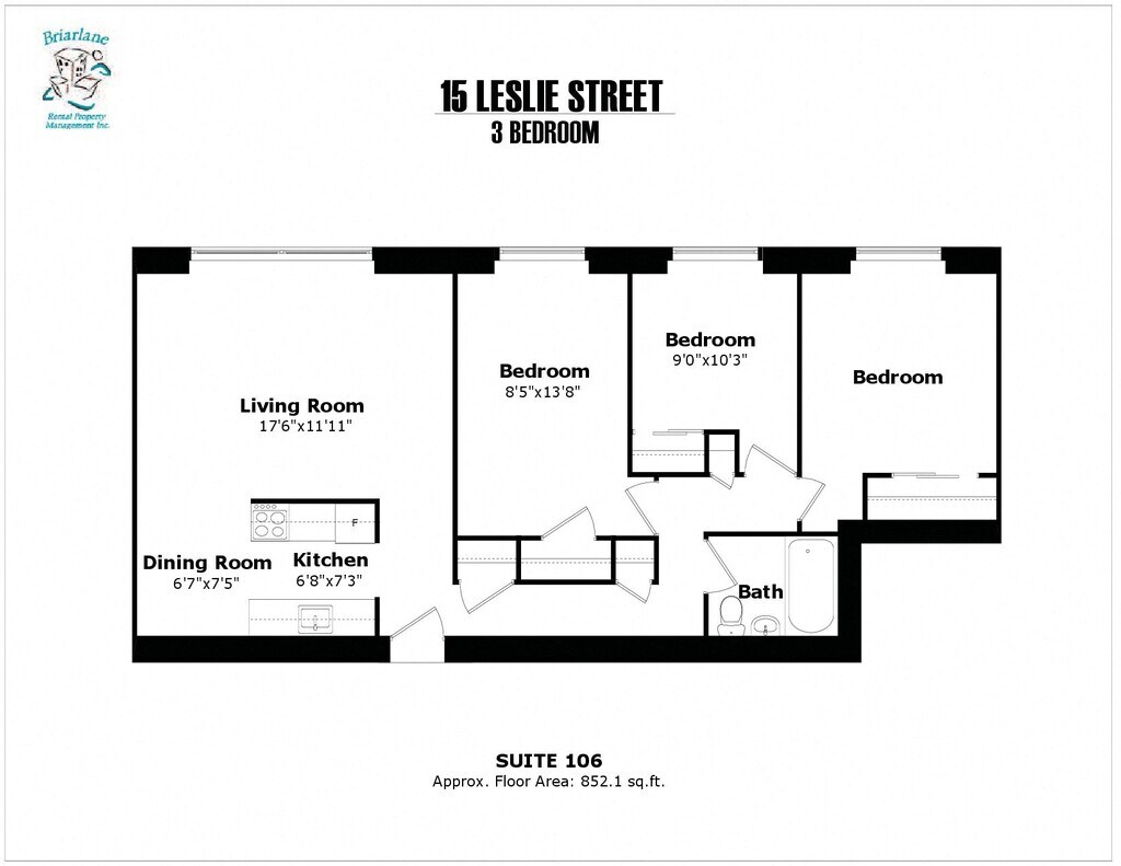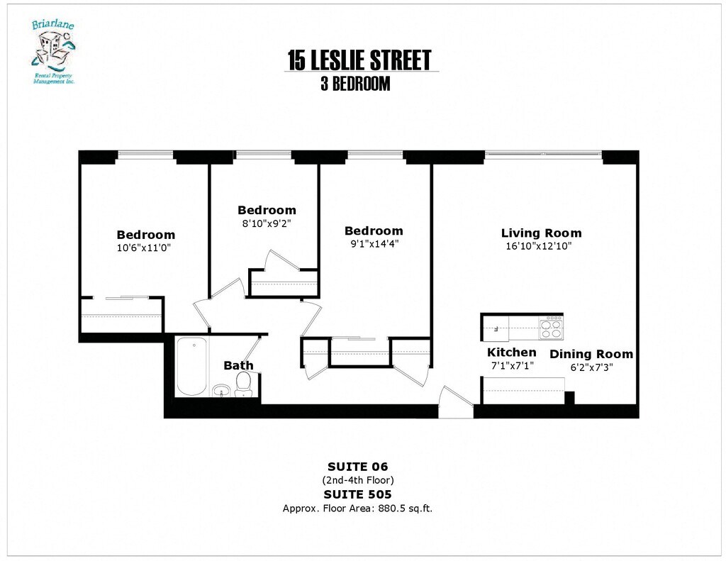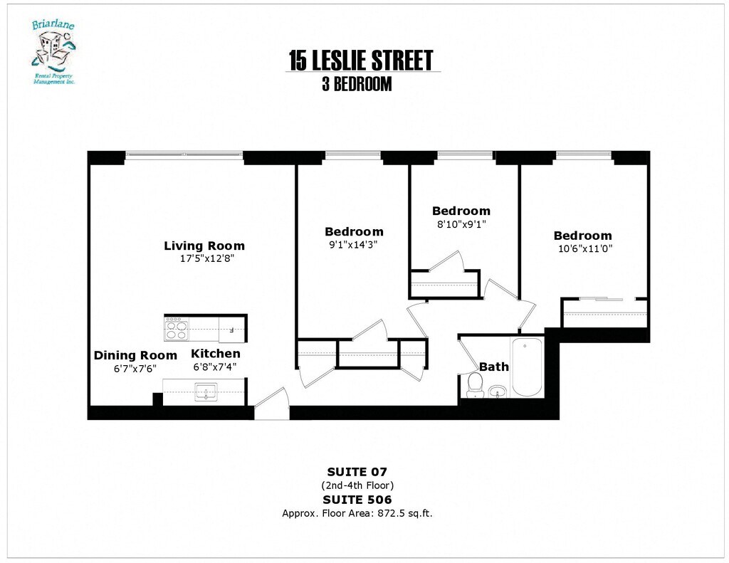 3 bedroom, 1 bathroom,East Side, beside elevator - Floorplan 3 Apartment Unit: 506Apartment Model: 3 bedroom, 1 bathroom,East Side, beside elevator$2,3973 Bedroom, 1 Bath, 872 sq ftAvailable January 1, 2026