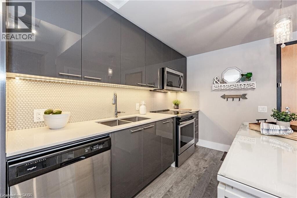 AVAILABLE FROM DEC 15th Bright and spacious 2-bed,2-bath condo in Victoria Commons. Open-concept layout with a large eat-in kitchen,modern cabinets,and plenty of room to cook and host. The unit includes a private balcony facing green space,custom blinds,under-cabinet lighting,a stylish backsplash,and 1 covered garage parking space. Great location — close to downtown Kitchener,Uptown Waterloo,and walking distance to the GO Station,ION LRT,and the Tech Hub with Google and Communitech nearby. Clean,upgraded,and move-in ready for Dec 15. Tenant pays all utilities. AAA tenants only. (id:52069) ID#: 2170374