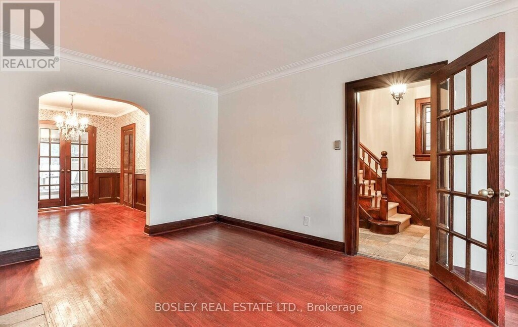 Welcome to this charming and spacious family home in the heart of South Leaside where timeless character meets modern comfort. This beautifully maintained residence showcases classic Leaside charm with hardwood floors,rich wood trim,leaded glass windows,a stunning bay window,elegant French doors,and a cozy wood-burning fireplace. Stylish chandeliers add a touch of sophistication throughout while providing you with the creature comforts of gas heating & central air conditioning. The updated all-white kitchen is both functional and inviting,featuring stainless steel appliances,abundant cupboard space and a pantry,perfect for family living and entertaining. The bright family room opens to the backyard through sliding glass doors,creating a seamless indoor-outdoor flow for maximizing your summer living. The upper level offers three generous bedrooms,while the finished basement adds versatility with a fourth bedroom,a spacious open-concept recreation room,and a convenient 2-piece bathroom. Enjoy a large private driveway with ample parking and a generous backyard ideal for summer BBQs and gatherings with family and friends. Located in one of Toronto's most sought-after,family-friendly neighbourhoods,you're just steps from Trace Manes Park where there's lots of activities for children with the a splash pad,baseball diamond and summer fairs and the public library is right next to the park. This home is walking distance to top tier Rolph Rd Elementary,Bessborough Middle School and Leaside High. Walk to vibrant Bayview Ave where you'll become a regular patron of the local shops,restaurants and services. Easy access to transit and major routes makes commuting a breeze. Drive downtown using the Bayview Extension or hop on the bus to the Davisville subway or the Eglinton LRT. A perfect place to call home,don't miss this opportunity! Note: Landlord will replace the deck out back this summer. (id:52069) ID#: 1416375