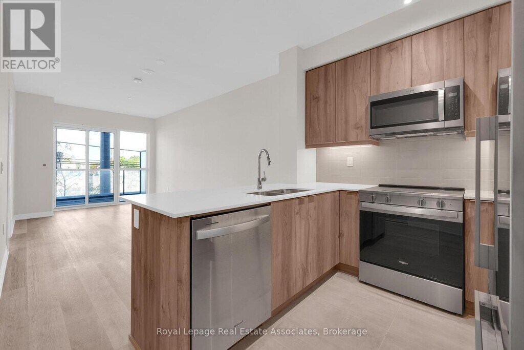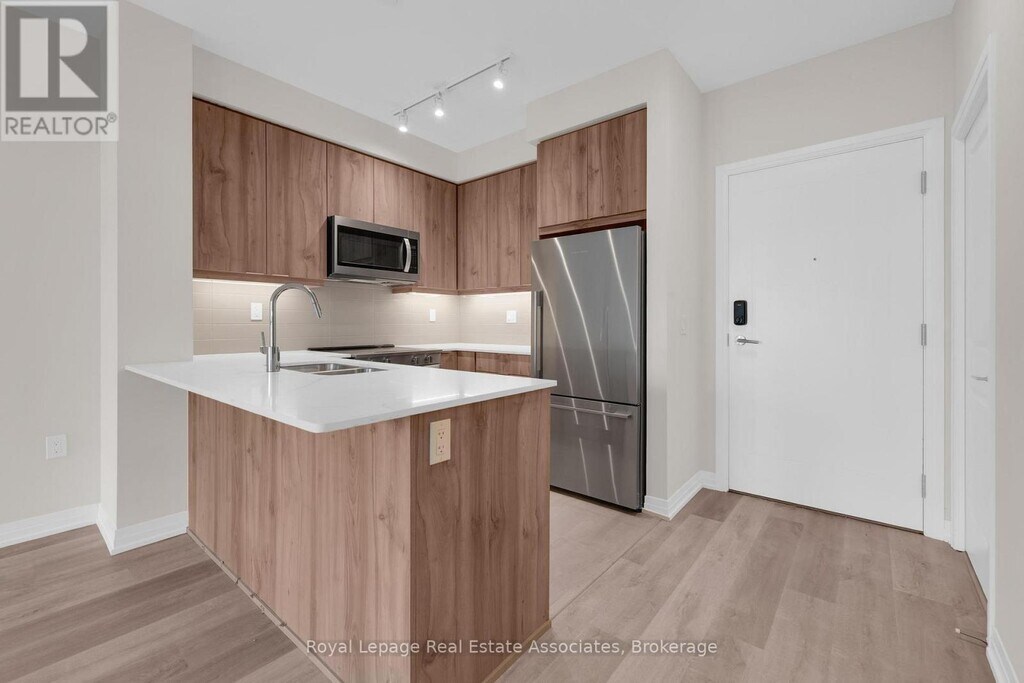 Welcome to this thoughtfully designed 1+den suite at 15 Watergarden Drive,offering 615 sq. ft. of modern living space. The open-concept layout flows seamlessly from the kitchen to the living and dining areas,complemented by large windows that fill the home with natural light.The kitchen features sleek wood-toned cabinetry,quartz countertops,a built-in breakfast bar,and stainless steel appliances,creating both function and style. A versatile den provides the perfect option for a home office,study,or guest space. The bright bedroom includes a generous closet,while the spa-inspired 4-piece bathroom showcases modern tiling,a deep soaker tub,and a contemporary vanity. In-suite laundry adds convenience. Step outside to your private balcony,offering an extension of your living space and room to unwind. Residents have access to a full suite of amenities,including a 24-hour concierge,fitness centre,indoor pool,party room,guest suites,and rooftop terrace. Ideally located near shopping,dining,parks,and major commuter routes,this home combines comfort with convenience. (id:52069) ID#: 1968379