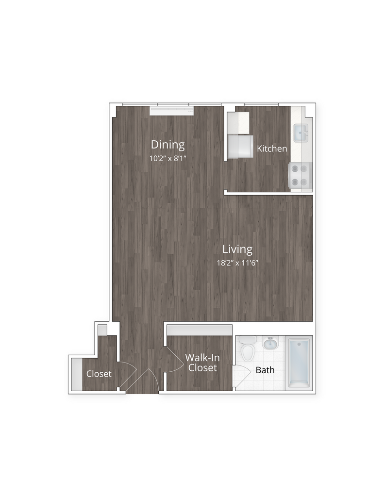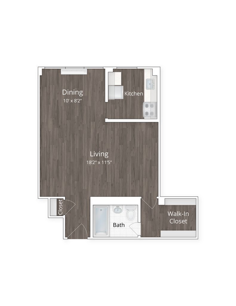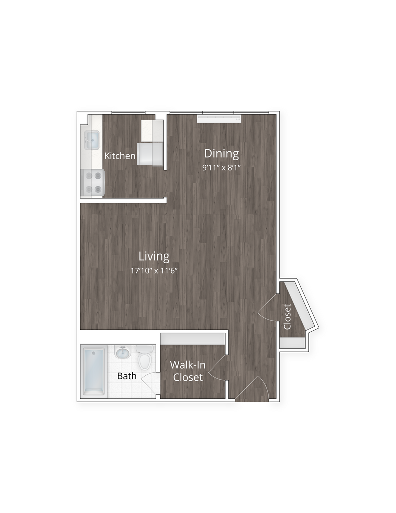 Studio, 1 Bath, 508-616 sq ftAvailable NowModel Gallery