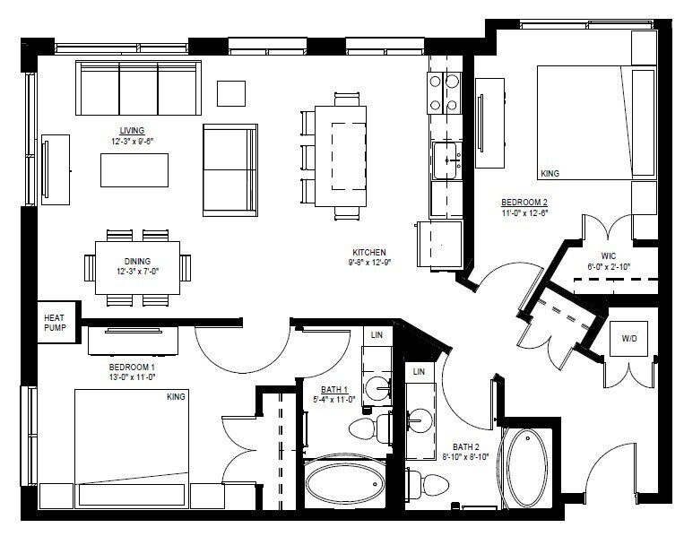 Two Bedroom - F (60%) - Floorplan Apartment Unit: 331Apartment Model: Two Bedroom - F (60%)$1,9162 Bedroom, 2 Bath, 1032 sq ftAvailable NowTwo Bedroom - S (80%)