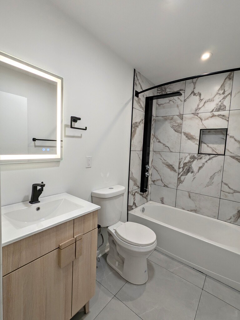 ***Promotional rate based on 6-month lease term*** Be the first to live in this modern, thoughtfully designed apartment in Brewerytown - Philadelphia's hottest new neighborhood! Enter through the front door and walk up to the 3rd floor entrance. The entryway opens into a spacious & bright kitchen with luxurious GE appliances, quartz counter-tops, garbage disposal with air switch, dishwasher, and ample amounts of cabinet space. The kitchen flows into the open concept living and dining areas. Adjacent to the living area you'll find a coat/storage closet and full bathroom with soaking tub. Moving to the rear, you'll find the first of two bedrooms with a large french door closet. The hallways leads to the in-unit laundry area, utility closets, and the the primary bedroom. This spacious suite has windows on two sides, another large double-door closet, and a private bathroom with a walk-in glass shower. The apartment includes a state-of-the-art video intercom, LED anti-fog bathroom mirrors, luxury vinyl flooring with sound deadening backing, and four-function shower columns with preset temperature gauge. The building has a huge common roof deck with amazing city skyline views and deck furniture great for entertaining or lounging. Ask for an application now, this unit won't last long! Promotional lease rate with renewal option after 6 months. First, last, and security deposit required for move-in. Flat water fee of $50/month. Tenant pays electric and cable/internet directly. Application fee of $55 covers background and credit checks.