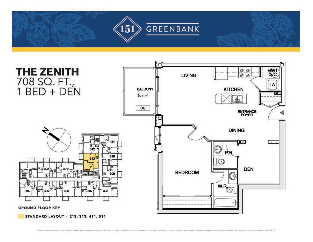 Apartment Model: 1 Bedroom + Den1 Bedroom, 1 Bath, 708 sq ftUnavailable![]() - 1 Bedroom + Den - Floorplan 1