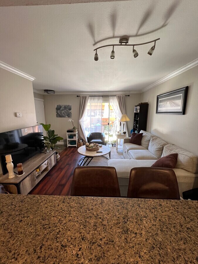 Centrally located in one of San Diegos most sought after communities. Updated flooring with granite counter tops. Many amenities such as pool and spa, fitness center, clubhouse, tennis court, EV charging and even a fire pit. Close to freeways and shopping. Unfurnished