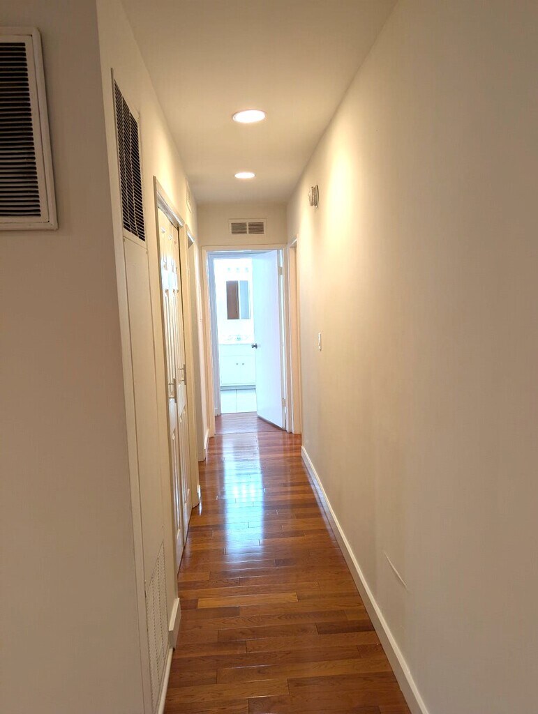 2 bed/2ba second floor unit featuring hardwood floors and recessed lighting Stainless steel appliances and granite countertops Nice sized balcony Plenty of closet space AC, ceiling fan, wall heater