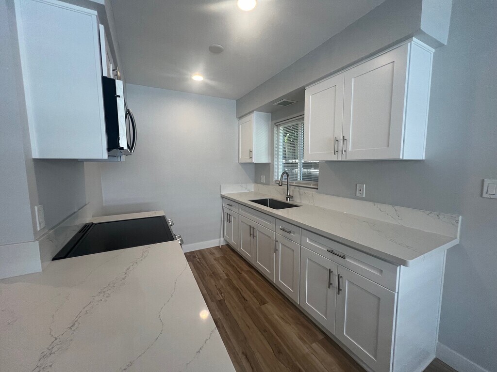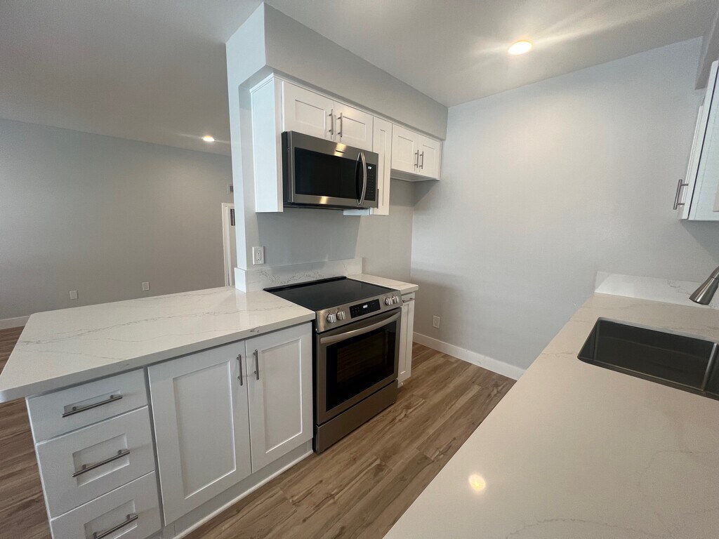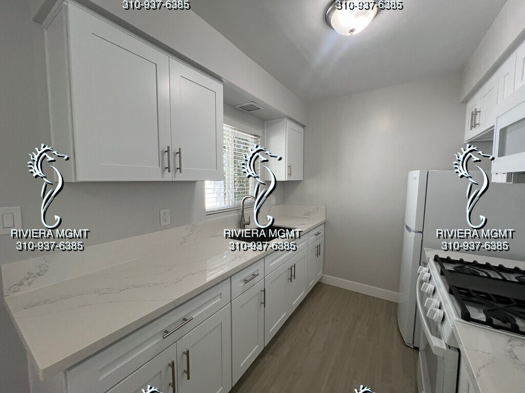Experience the charm of coastal living in this newly renovated, lower level 1-bedroom, 1-bathroom apartment in the heart of Manhattan Beach, CA. This unit boasts a fresh, modern aesthetic with new vinyl planking floors, fresh paint, and brand new kitchen countertops. The kitchen comes equipped with a stove, microwave, and a refrigerator for tenant use. The bedroom features mirrored closet doors and a ceiling fan for added comfort. Step outside to enjoy a small outdoor space, perfect for soaking up the California sun. The apartment's prime location is just a stone's throw away from a park and the award-winning Manhattan Beach Schools. Experience the best of Manhattan Beach living in this stylish, lower level 1 bed 1 bath apartment.