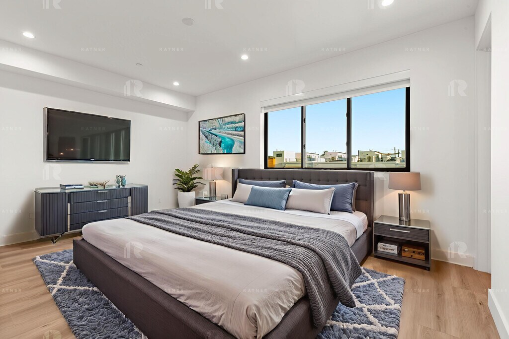 Unwind with a glass of wine and your favorite music in your New Construction (built in 2024) contemporary tri-level 3 bed / 4 bath 2,100sf single family home, in an exclusive private gated community. ROOFTOP DECK: Take in the peaceful view and warm summer city nights on the private rooftop deck. PRIVATE GARAGE AND THIRD BEDROOM/OFFICE: Enjoy the privacy and conveniences of your own large 2-car garage with Power Source/EV Charger-ready and third bedroom/office/den with a full bathroom, on the ground level. LIVING SPACE: Free yourself of life's stress in your spacious open-concept living space on the main level, featuring an abundance of natural light, dry bar, wide balcony, dining area, deluxe chef's kitchen, and a partitioned powder room. Your modern designer kitchen features white marble style granite countertops and a large center island with seating room for four, under cabinet accent lighting, and stainless-steel appliances include a five-burner gas range, dishwasher, microwave, and large French door-style refrigerator. PRIVATE SPACE: The third level features two luxurious bedrooms with beautiful ensuite bathrooms appointed with stylish, modern fixtures and large spa-like showers and tub. EXTRAS: State-of-the-art extras include: Smart front loading washer and dryer, central a/c and heat w/ Smart thermostat, high ceilings, LED recessed and stylish pendulum lighting, wired for video doorbell, high-end wood laminate plank flooring throughout and much more. RENT AND TERMS: - Move-in Special: 1 MONTH FREE - Rent: $6,795/mo (move-in special reflected in advertised rent) - Security Deposit: $4,500 - Pet Rent: $75/mo - Lease term: 13 months SCHEDULE YOUR TOUR NOW! Virtual Tour: https ://my. matterport. com/show/?m=7Gni53GBH6a https ://youtu.be/oGqz5m78PK8