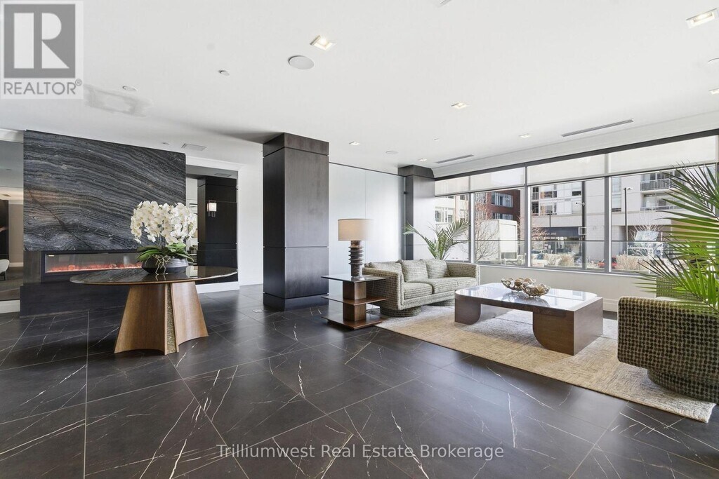 From the moment you enter the luxurious reception area and are greeted by the friendly concierge,you know that this building is something special. Welcome to the Caroline Street Private Residences! This is your chance to live in one of Waterloo's most prestigious and upscale buildings. This beautiful 2 bedroom,2 bathroom corner unit offers stunning views of Uptown Waterloo from its 236sqft wrap around,private balcony. Inside you will find a bright and spacious open concept layout with premium finishes throughout. The modern kitchen features a super functional peninsula/breakfast bar for additional seating,crisp white cabinets,a tasteful backsplash,stainless appliances and stone countertops. Both bedrooms offer abundant natural light,and the primary bedroom features access to the beautiful 3 piece ensuite bathroom,as well as an additional doorway to the private wrap around balcony. The building amenities here are top notch and feature a large and well maintained fitness room,a luxurious residents lounge that has access to the massive outdoor terrace area with communal BBQs and even an outdoor putting area so you can work on your short game! There is also a games room,a board room and there are even guest suites that are available to rent nightly. In terms of location,it doesn't get much better than 155 Caroline St S. You are located directly across from Vincenzo's Market and the fantastic Bauer Kitchen restaurant,and you are just a short walk away from all of the fantastic stores,shops,cafes and restaurants that Uptown Waterloo has to offer. You are close to walking/biking trails,Waterloo Park,one of the most prestigious golf courses in the area,and you even have an LRT stop nearby. This place is truly something special! (id:52069) ID#: 2252858