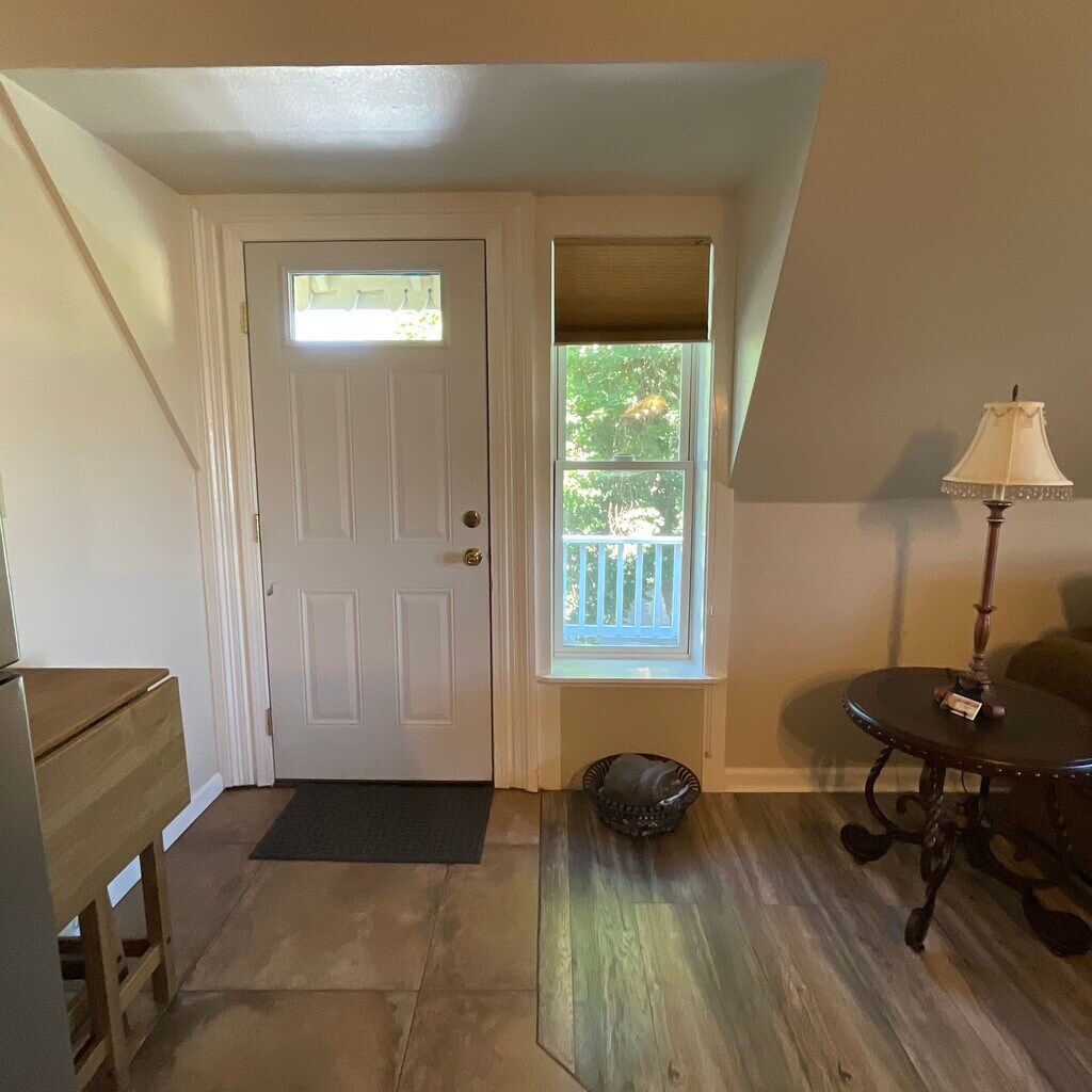 This apartment comes fully furnished and ready to occupy. Laundry room is free to use, you provide your own detergent, grounds are kept up and there are views from the upper windows. Small balcony, porch area for patio set if you wish. Close to town so you can walk in if you would like. Other two apartments are occupied, lab technician from local hospital and one elderly gentleman in the other unit. All units have their own private front door entrance and are fully self-contained. This unit is not adequate for animals that cannot get out for bathroom and/or walking unless owner is available for that during the day.