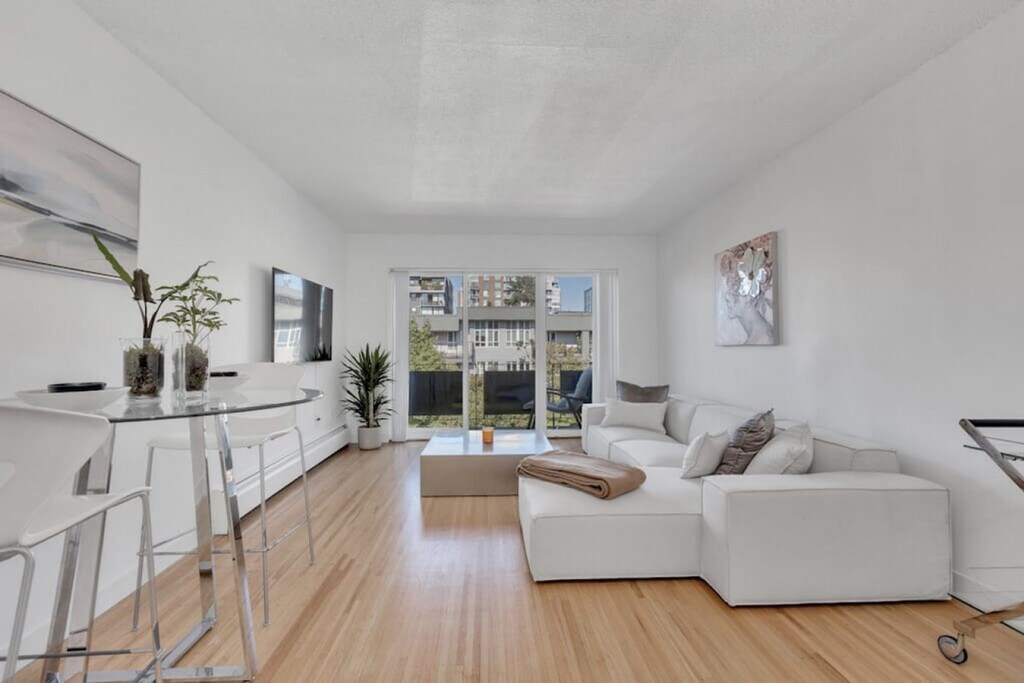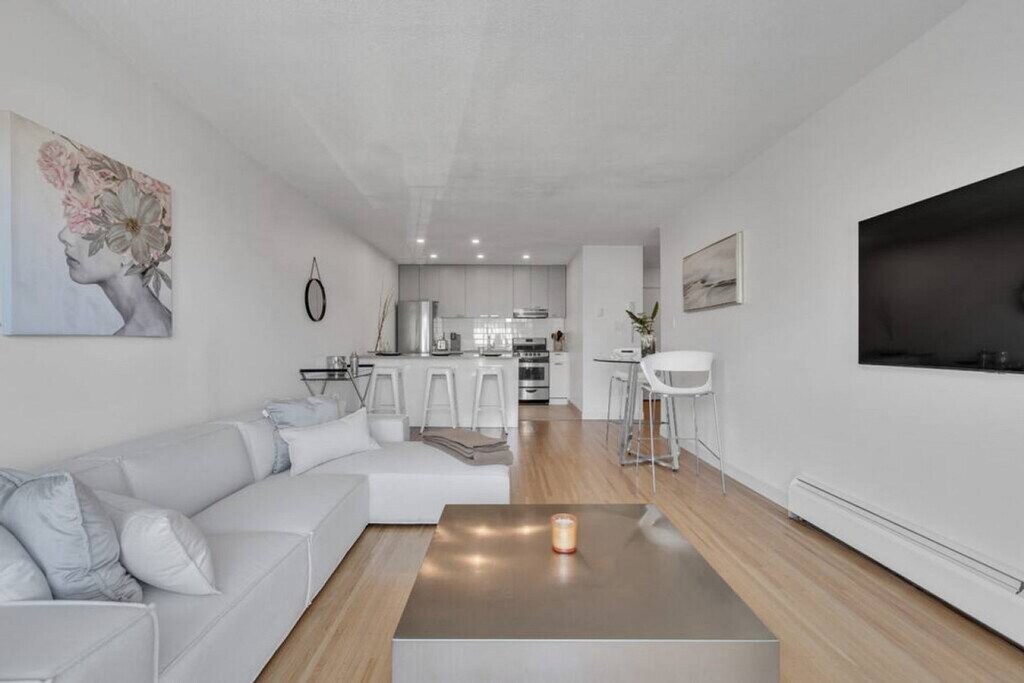 Nestled in the peaceful neighborhood streets of the brilliant Kitsilano area, this stunning 1-bedroom apartment provides everything one could need for a brilliant stay in Vancouver. Close to Kitsilano's most attractive scenes such as 4th Avenue and Kits Beach, this condo finds itself in an area that will never cease to entertain. The home is brought to life through its neutral tones in parity with industrial design finishes. Comfort and functionality are on full display within the home. The space offers an open-concept layout with the kitchen and living room expressing a wide design as they meld together brilliantly. The hardwood floors complement the bright whites of the space to tie together a luxury essence. Within the home is a bedroom, a sizeable living room, a full kitchen, a full bathroom, and an in-suite washer/dryer. Kitsilano is a picturesque area that encompasses the true essence of Vancouver and all it has to offer. Kits Beach provides soft sand, lovely waters, and stunning views of the ocean and signature mountain ranges unique to the Pacific Northwest. 4th Avenue is exciting and bustling with life, offering lovely shops, cafés, groceries, and efficient transit. No matter the time of year, Kitsilano is always fun and intriguing. Getting around Kitsilano is simple and effective with bus routes that go up and down 4th Avenue and abundant rideshare services. Nothing is too far from Kitsilano as it proves to be central and accessible. It is a 20-minute drive from YVR Airport, a 2-minute walk to a bus stop, a 5-minute drive to a grocery store, a 3-minute drive to a pharmacy, and a 5-minute drive to Downtown Vancouver. The heating system is turned off during the summer months, from June to September. Important house rules include no parties and no large gatherings.