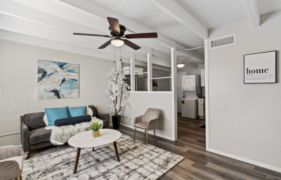 Newly renovated multi family apartment unit in North Phoenix. Fresh interiors with new appliances, washer and dryers in units and move in ready. Located in a quiet part of the city with peaceful mornings and excellent mountain views! Pets okay with management approval, fenced yards available!