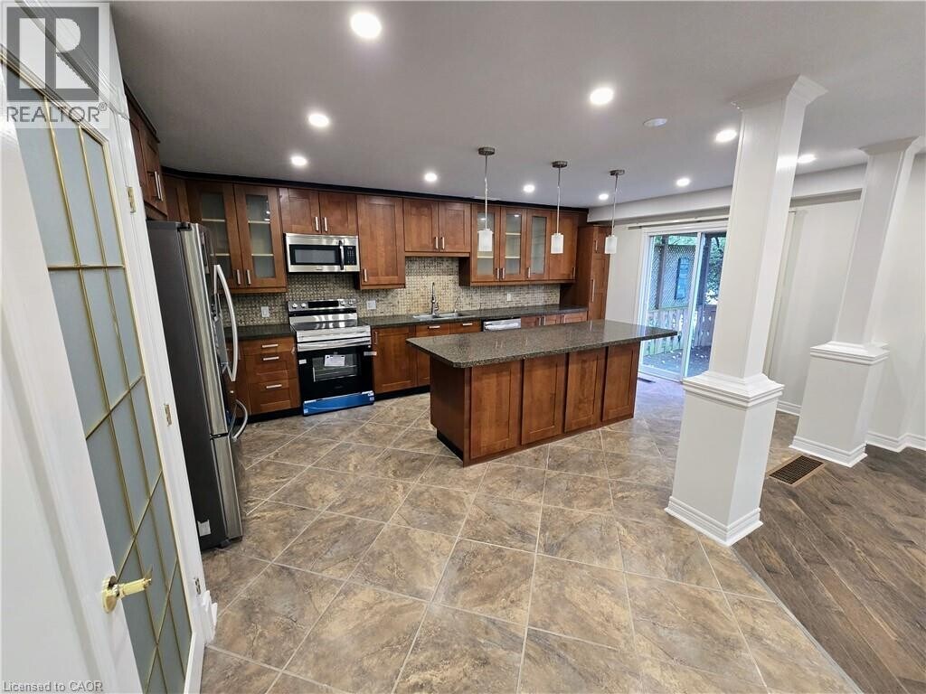 This spectacular 2-in-1 home is a rare lease opportunity offering incredible space,flexibility,and value—ideal for large or multigenerational families who want their own space under one roof. Featuring two fully equipped kitchens with brand-new stainless steel appliances,the home includes a beautifully renovated main kitchen with an oversized island,pot lights,and a formal dining area perfect for family gatherings. The upper level offers 3 spacious bedrooms,including a massive primary suite with a 5-piece ensuite,walk-in closet,and walk-out to a private covered balcony,plus the convenience of top-floor laundry. The fully finished basement has its own private entrance from the garage and offers a 1-bedroom suite with its own kitchen,bathroom,and family room. This carpet-free home features two gas fireplaces,crown moulding,fresh paint,and plenty of natural light. Enjoy a fully fenced backyard with no rear neighbours and a large deck ideal for outdoor entertaining. Located in a quiet,family-friendly neighbourhood close to parks,schools,transit,and shopping. Lease includes the entire home,driveway,and garage (parking for 5). (id:52069) ID#: 1750501