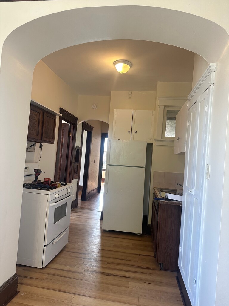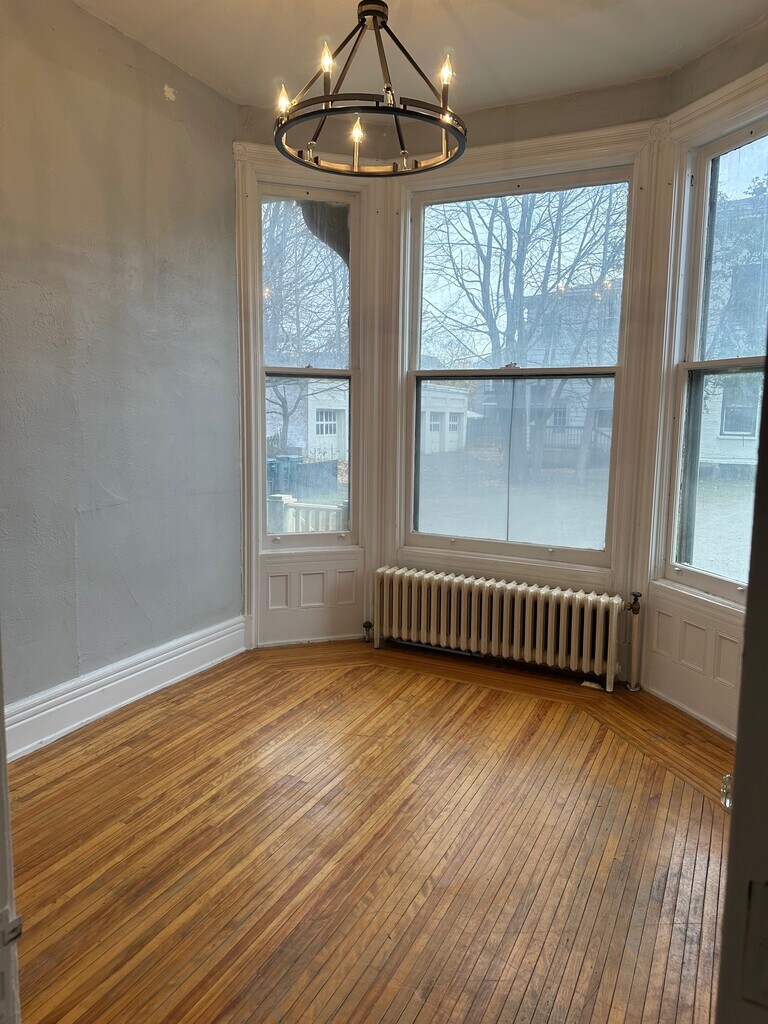 Charming 1 bedroom heat included, hardwood floors, convenient coin laundry on site. Unique characteristics! Off street parking with snowplowing, garage available for additional fee. Historic neighborhood, walking distance to downtown and water front. $1095 heat included!