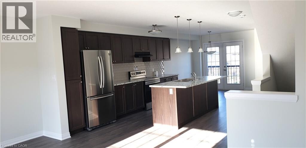 Beautifully finished top to bottom 3-bedroom,2.5-bathroom home. Open Concept main floor with SS appliances in the kitchen,huge island,modern laminate flooring. Master Bedroom with ensuite bathroom and walk-in closet. Central Air and garage door opener with remotes. DOUBLE GARAGE. Great location with easy access to 401,parks and elementary school just across the street. Utilities paid by tenants include water heater and softener rentals. Good credit is required,and a full application must be submitted. Photos as per vacant unit. Available from June 1st. (id:52069) ID#: 1750129