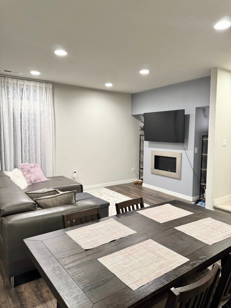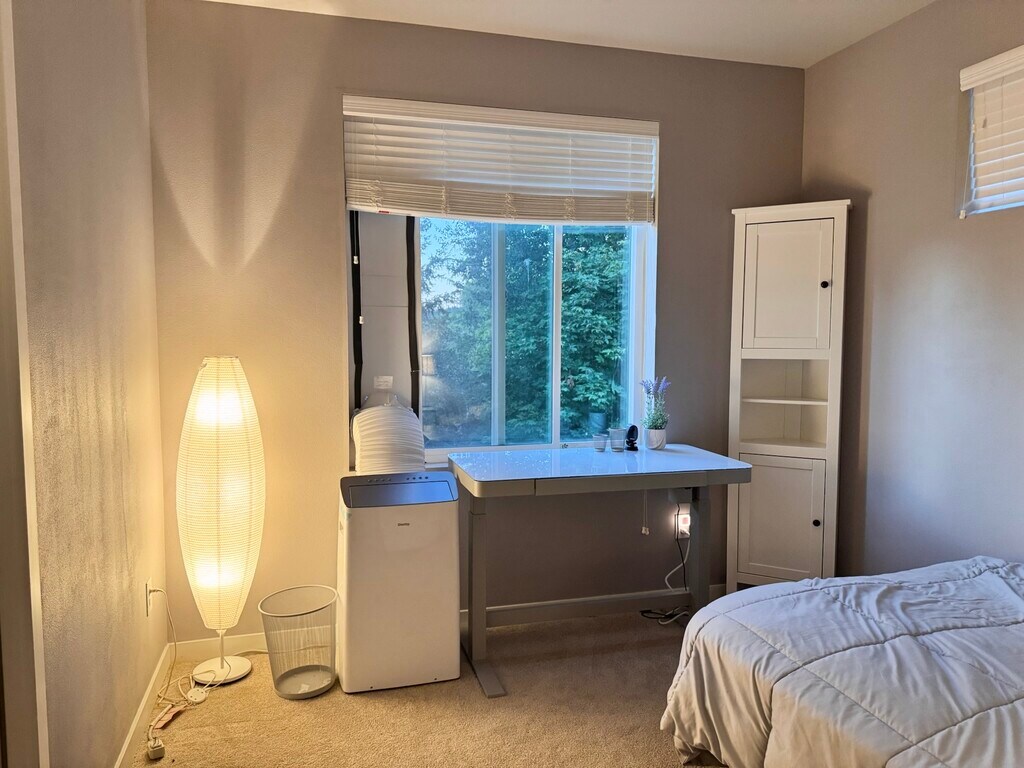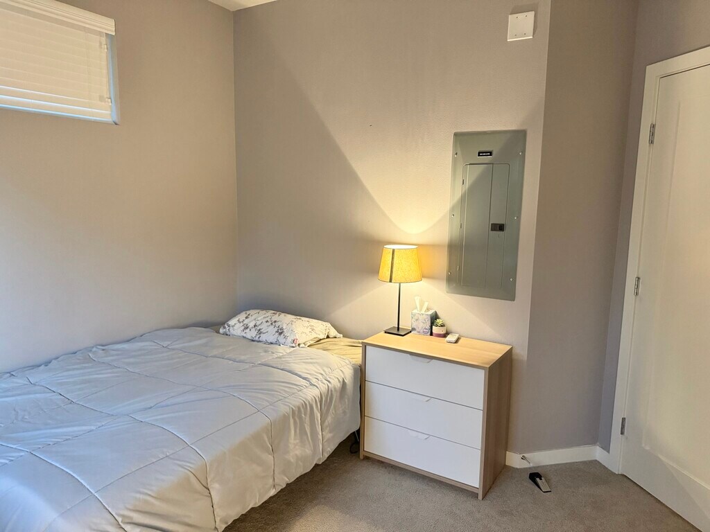 This property, located in central Bellevue within a peaceful community of trees and running creek, boasts 5 bedrooms and 3.5 bathrooms across three levels. It is fully furnished and move-in ready, with a two-car garage, community lawn and play structure, and located directly across from Evergreen Village (restaurants, boba, salons, groceries). Only ONE prior occupant - excellent condition. Is a 10-minute walk to BelRed light rail station, bus stop to downtown Bellevue is right outside, easy access to I-405, I-90, and Highway 520. 5-minute drive to downtown Bellevue and highly-rated schools: Odle Middle School, Stevenson Elementary, and Interlake High School. BOTTOM FLOOR • Main entryway with jacket and shoe storage • Guest bedroom with full bathroom • Two-car garage with secure parking and storage for tools, bikes, and seasonal items MIDDLE FLOOR • Full kitchen with ample counter space, LG refrigerator, dishwasher, oven, stove, microwave, and cooking appliances • Dedicated office with large flat-screen TV - perfect for remote work or study, convertible to bedroom • Expansive living room with sofas, flat-screen TV, wine shelf, and bookshelves • Large windows and outdoor balcony ideal for gardening • Half bathroom for convenience TOP FLOOR • Modern LG washer and dryer with laundry storage room • Master bedroom with king-sized memory foam mattress, abundant natural light, attached bathroom with dual sinks, walk-in closet, and in-room TV • Two additional bedrooms - flexible for children's rooms, guest rooms, hobby spaces, or home gym • Full bathroom with dual sinks and tub ADDITIONAL FEATURES • All bedrooms have pre-installed window blinds • Hinge-door closets in all bedrooms (except master with walk-in closet) • Small, quiet neighborhood feel with big city convenience Please feel welcome to contact us for more information. All inquiries directly contact the homeowner.