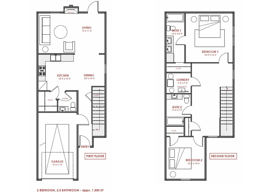 2 Beds, 2.5 Baths, 1300 sq ftAvailable NowModel Gallery