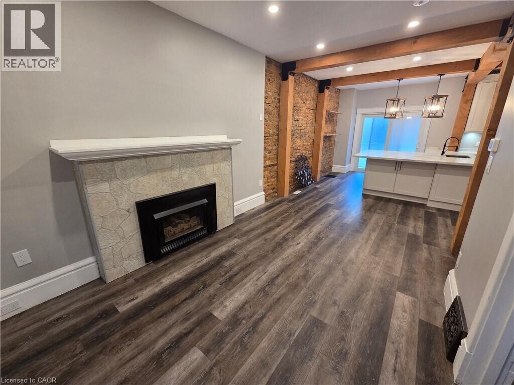 Gorgeous renovated unit in the desirable St Clair neighbourhood. Outside has covered porch,sun deck,and backyard use. Includes private parking. Brick and beam main floor with pot lights,natural gas fireplace,exposed brick,huge kitchen island with breakfast bar,SS gas stove,wine fridge and SS Fridge with main floor laundry/bathroom. Included is King Size bed,dresser,TV Mounted on wall and sunchairs in the front porch. Spacious renovated primary with another large renovated bathroom with glass shower & his/her sinks. Great location close to amenities,schools,Gage park and public transit. All usual documents requested. (id:52069) ID#: 1994874